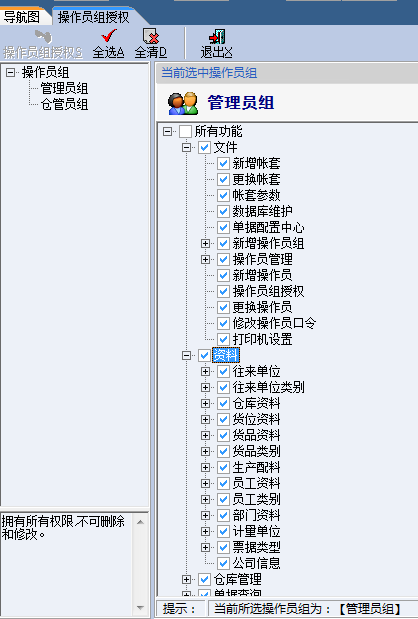 实现多帐套管理,各帐套数据互不影响,并可互相引入基础资料 ,具体到某个仓库的某个货架的货品数量查询。全新整合的帐套管理功能使用户不必再为帐套的设置问题而烦恼,轻松建立帐套,随意设置操作员的工作权限,更加科学的系统维护提高了数据的安全保障。