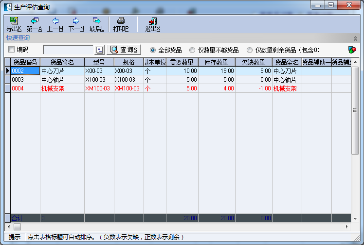 可以具体查询某个货架号上存放着的货品以及货品的数量。