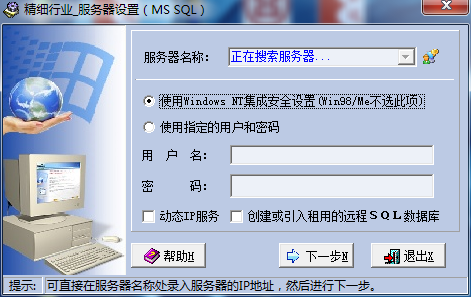2、数据库稳定安全。软件同时支持两种数据库版本,一种是采用微软公司的Access作后台数据库,性能稳定、数据交换速度快、数据安全。另一种是采用微软公司的MS SQL Server 2000作后台数据库,性能更稳定、数据交换速度更快、数据更安全。
