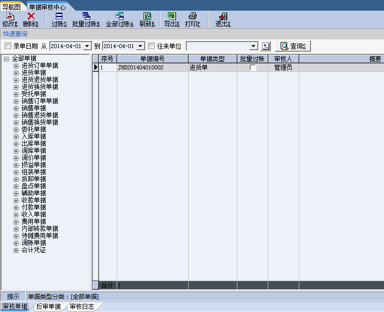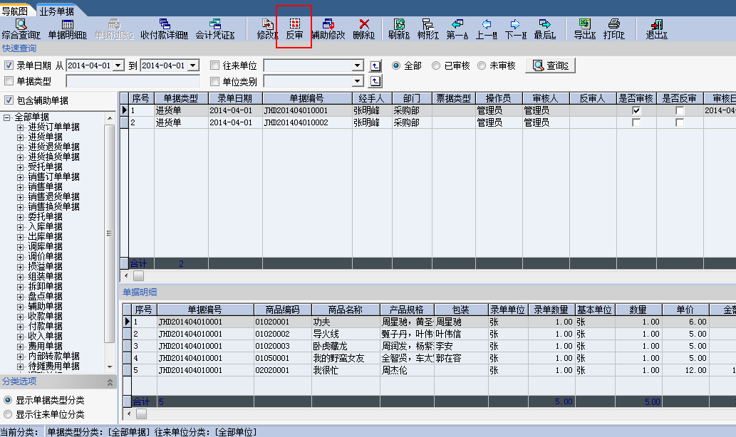在业务单据查询处,也可直接选中单据,进行反审,使反审更加快捷方便。