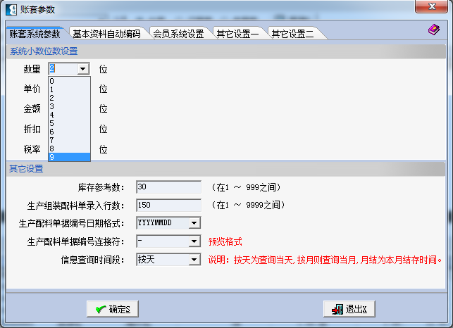 使数量、单价、合计的精确度任意定义,可定义到小数后九位数字,完全可满足一般纳税人的记账要求。