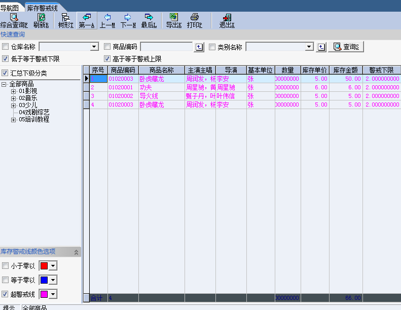 让客户不必天天查看各种数据的变化趋势,只要设置了报警范围,如果有数据超越此范围,系统自动报警。也可在库存警戒线窗口,以不同的颜色显示超警戒线商品以及等于零或小于0的商品。