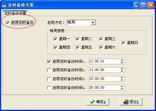 7. 进入定时界面,点击左上角启用定时备份,设置好你需要定时备份的时间,点击确定即可。