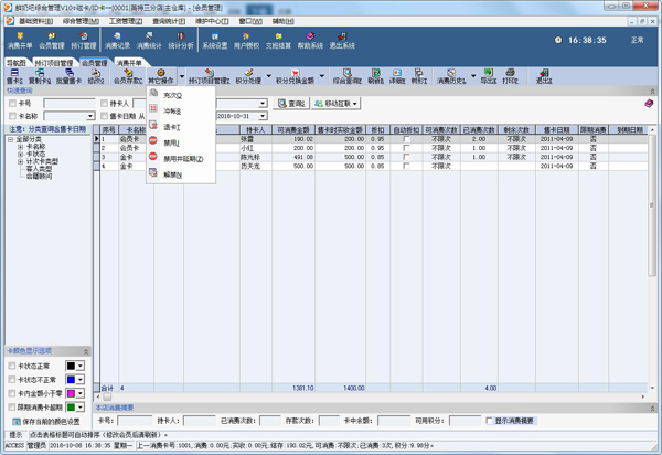 3、会员的销售、退还、存款、禁用功能操作简明;