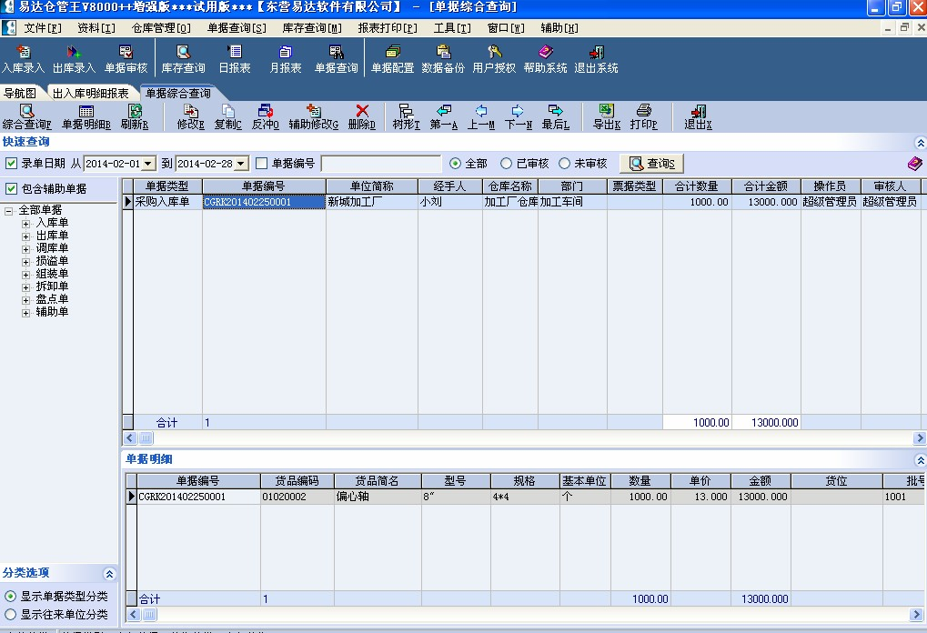 易达仓管王V8000很多是应于比较正规的大型的企业,这些企业中,有时对仓库金额的要求比较严格,需要与财务账目对应。