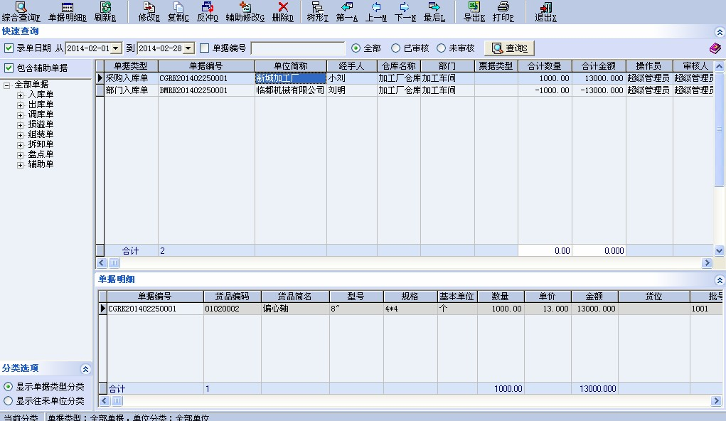 (一) 首先打开软件,单据查询,到单据查询中心找到我们需要查询的单据,如下图: