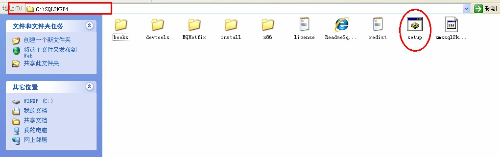 在安装SQL2000文件夹的时候有一个安装包,SQL2KSP4.文件,双击它,是进行解压,在解压的时候 请记住文件解压到哪一个盘中,再到相应的盘符中找到该文件夹,SQL2KSP4, 如下图;