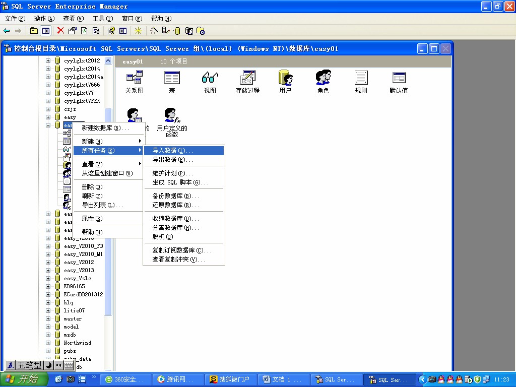 在要导入数据的数据库上右击,点“所有任务”—— “导入数据”: