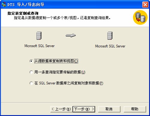 选择从数据库复制表和视图。