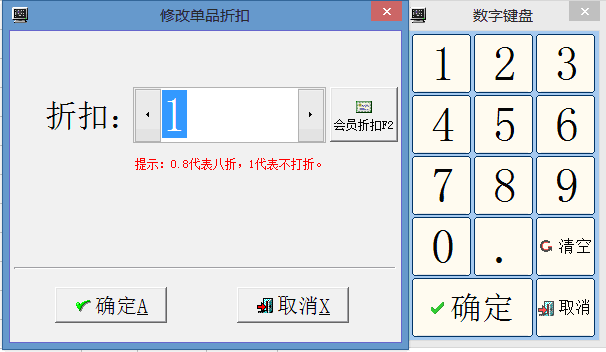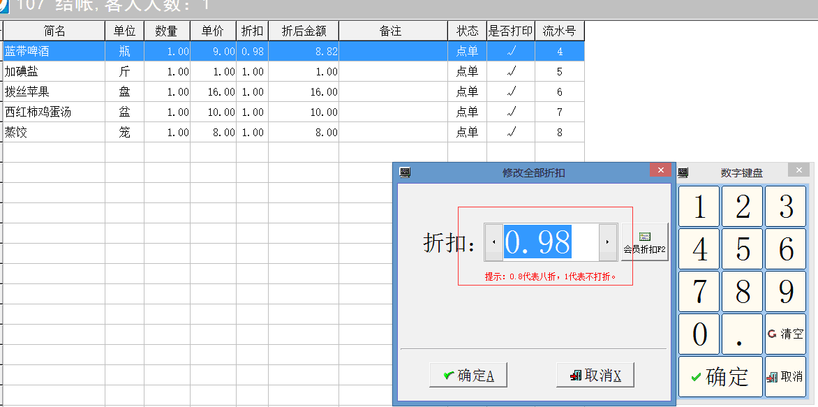 在启用结账打折设置后,结账时将直接使用设置的折扣方法。