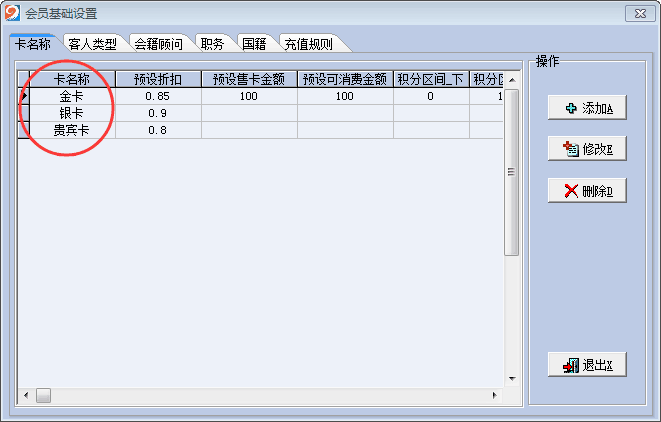 3.进入会员基础及会员管理中心进行会员卡等级设置,如下图: