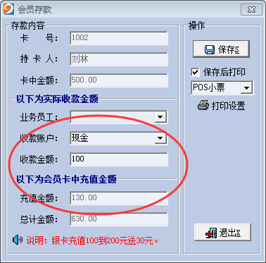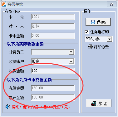 4.不同等级会员卡充值时,赠送金额不一样。如下图: