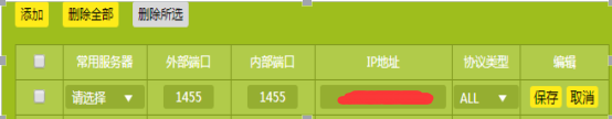 1.登录网址192.168.1.1,选择应用管理,然后选择虚拟服务器,选择添加,进行外部端口,内部端口以及Ip的添加,保存。如下图: