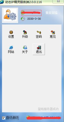 四、此时服务器端只需登录上动态IP精灵。如下图: