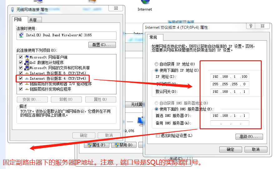 4.设置副由器下服务器的IP地址,必须是副路由器中设置的转发地址。如下图: