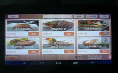 平板安装平板点餐终端软件,连接服务电脑下载菜品信息后,进行点菜应用。